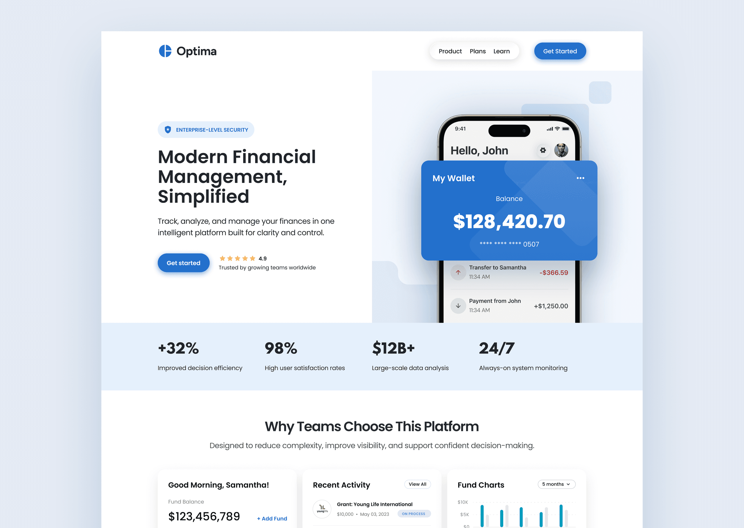 A modern fintech website designed with ease of use in mind, utilizing Appleโs new liquid glass design elements.