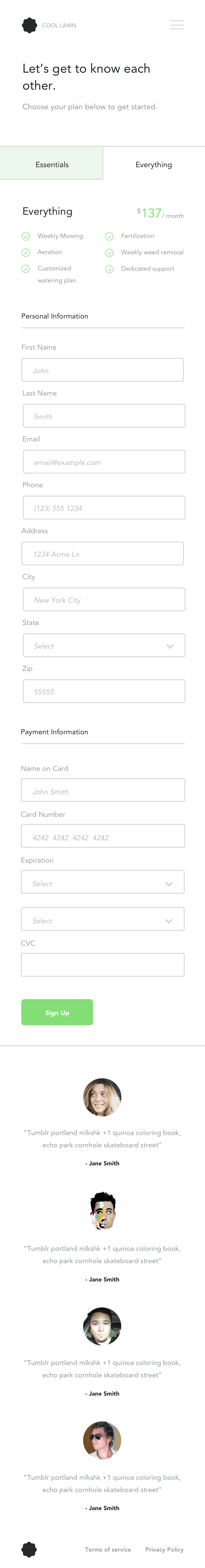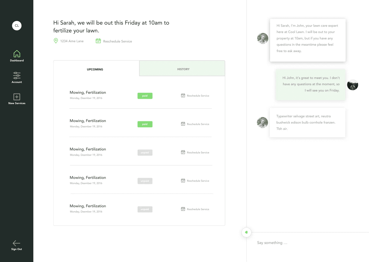 A web and mobile web platform for lawn care and maintenance.